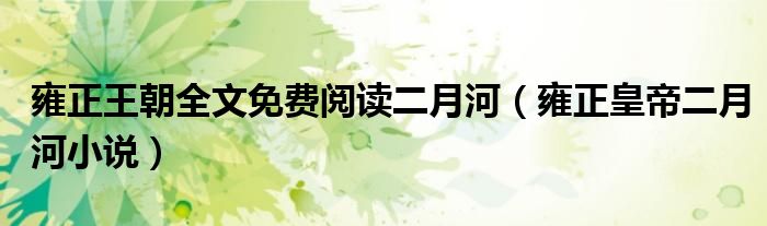 关于雍正王朝全文免费阅读二月河,雍正皇帝二月河小说这个很多人还不知道,今天菲菲来为大家解答以上的问题,现在让我们一起来看看吧!