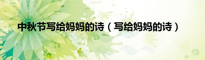 关于中秋节写给妈妈的诗,写给妈妈的诗这个很多人还不知道,今天菲菲来为大家解答以上的问题,现在让我们一起来看看吧!