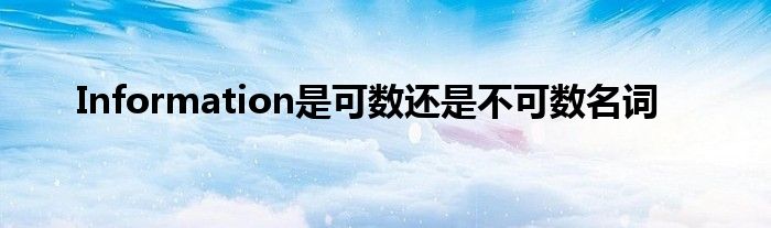 关于Information是可数还是不可数名词这个很多人还不知道,今天菲菲来为大家解答以上的问题,现在让我们一起来看看吧!