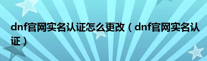 关于dnf官网实名认证怎么更改,dnf官网实名认证这个很多人还不知道,今天菲菲来为大家解答以上的问题,现在让我们一起来看看吧!