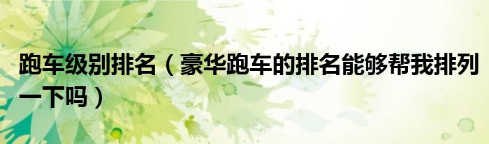 关于跑车级别排名,豪华跑车的排名能够帮我排列一下吗这个很多人还不知道,今天菲菲来为大家解答以上的问题,现在让我们一起来看看吧!