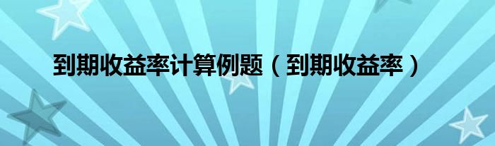 关于到期收益率计算例题,到期收益率这个很多人还不知道,今天菲菲来为大家解答以上的问题,现在让我们一起来看看吧!