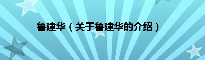 大家好,今天小乐来为大家解答以上的问题。鲁建华,关于鲁建华的介绍很多人还不知道,现在让我们一起来看看吧!