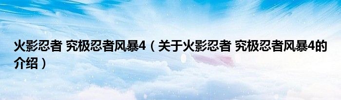 大家好,今天小乐来为大家解答以上的问题。火影忍者 究极忍者风暴4,关于火影忍者 究极忍者风暴4的介绍很多人还不知道,现在让我们一起来看看吧!