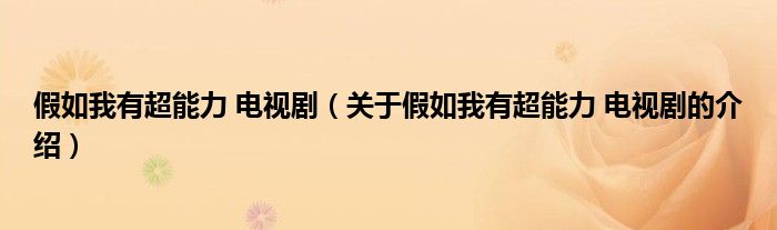 假如我有超能力 电视剧(关于假如我有超能力 电视剧的介绍)