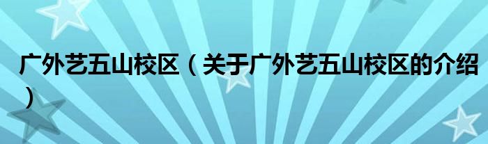 大家好,今天小乐来为大家解答以上的问题。广外艺五山校区,关于广外艺五山校区的介绍很多人还不知道,现在让我们一起来看看吧!