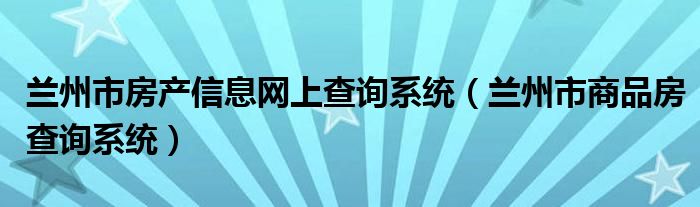 兰州市房产信息网上查询系统(兰州市商品房查询系统)
