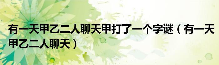 关于有一天甲乙二人聊天甲打了一个字谜,有一天甲乙二人聊天这个很多人还不知道,今天菲菲来为大家解答以上的问题,现在让我们一起来看看吧!