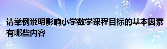 关于请举例说明影响小学数学课程目标的基本因素有哪些内容这个很多人还不知道,今天菲菲来为大家解答以上的问题,现在让我们一起来看看吧!
