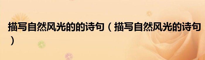 关于描写自然风光的的诗句,描写自然风光的诗句这个很多人还不知道,今天菲菲来为大家解答以上的问题,现在让我们一起来看看吧!