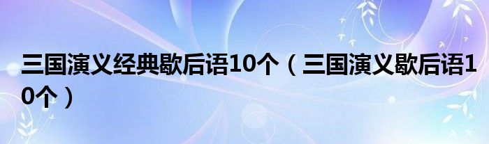 关于三国演义经典歇后语10个,三国演义歇后语10个这个很多人还不知道,今天菲菲来为大家解答以上的问题,现在让我们一起来看看吧!