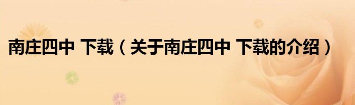 大家好,今天小乐来为大家解答以上的问题。南庄四中 下载,关于南庄四中 下载的介绍很多人还不知道,现在让我们一起来看看吧!