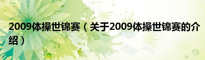 大家好,今天小乐来为大家解答以上的问题。2009体操世锦赛,关于2009体操世锦赛的介绍很多人还不知道,现在让我们一起来看看吧!
