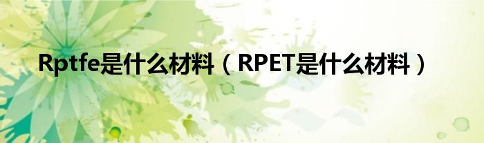 关于Rptfe是什么材料,RPET是什么材料这个很多人还不知道,今天菲菲来为大家解答以上的问题,现在让我们一起来看看吧!