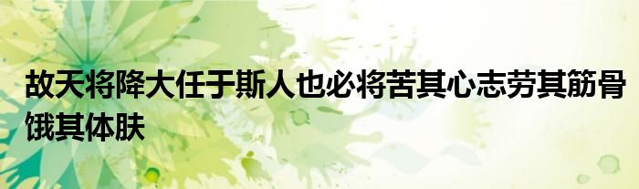 关于故天将降大任于斯人也必将苦其心志劳其筋骨饿其体肤这个很多人还不知道,今天菲菲来为大家解答以上的问题,现在让我们一起来看看吧!