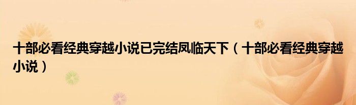 大家好,小晋来为大家解答以下问题,关于十部必看经典穿越小说已完结凤临天下,十部必看经典穿越小说很多人还不知道,今天让我们一起来看看吧!