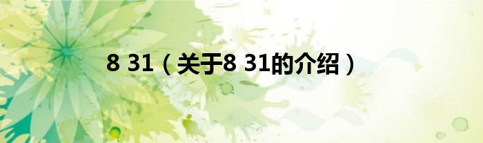 大家好,小都来为大家解答以上的问题。8 31,关于8 31的介绍很多人还不知道,现在让我们一起来看看吧!