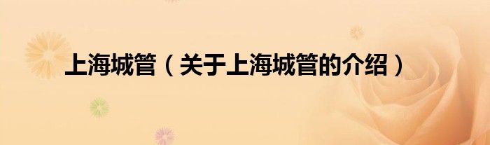 上海城管(关于上海城管的介绍)