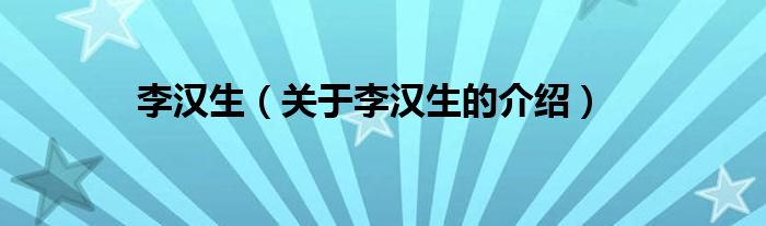 大家好,小都来为大家解答以上的问题。李汉生,关于李汉生的介绍很多人还不知道,现在让我们一起来看看吧!