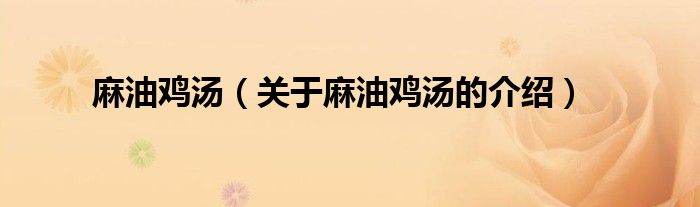 大家好,小都来为大家解答以上的问题。麻油鸡汤,关于麻油鸡汤的介绍很多人还不知道,现在让我们一起来看看吧!