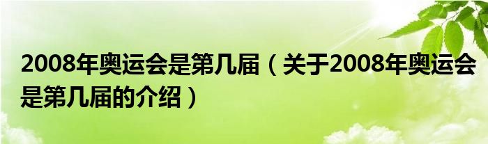 大家好,小都来为大家解答以上的问题。2008年奥运会是第几届,关于2008年奥运会是第几届的介绍很多人还不知道,现在让我们一起来看看吧!
