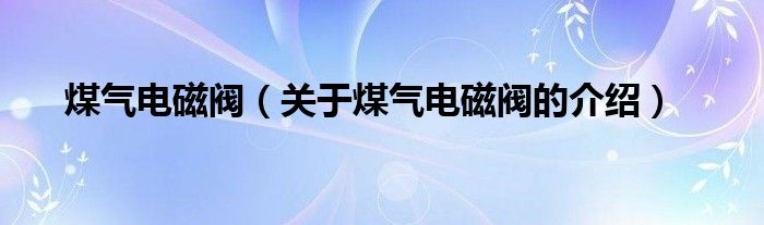 煤气电磁阀(关于煤气电磁阀的介绍)