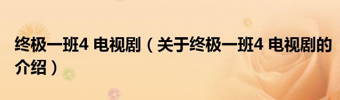 大家好,小都来为大家解答以上的问题。终极一班4 电视剧,关于终极一班4 电视剧的介绍很多人还不知道,现在让我们一起来看看吧!
