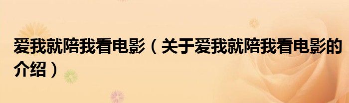 大家好,小都来为大家解答以上的问题。爱我就陪我看电影,关于爱我就陪我看电影的介绍很多人还不知道,现在让我们一起来看看吧!