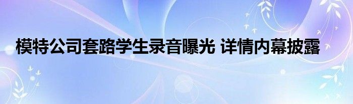 大家好.我是互联百科的羽儿,现在为大家解决以上模特公司套路学生录音曝光 详情内幕披露的问题.