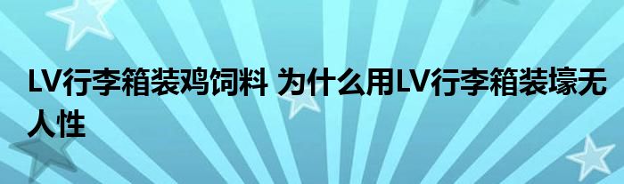 大家好.我是互联百科的羽儿,现在为大家解决以上LV行李箱装鸡饲料 为什么用LV行李箱装壕无人性的问题.