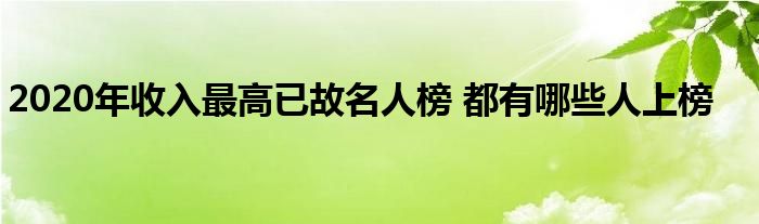 大家好.我是互联百科的羽儿,现在为大家解决以上2020年收入最高已故名人榜 都有哪些人上榜的问题.