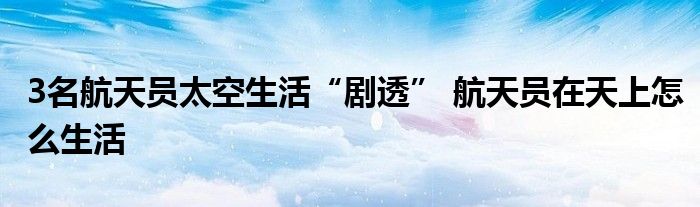 大家好.我是互联百科的羽儿,现在为大家解决以上3名航天员太空生活“剧透” 航天员在天上怎么生活的问题.