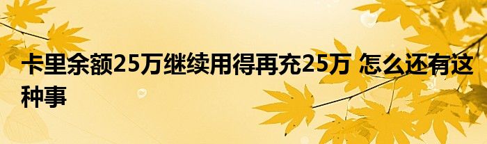 卡里余额25万继续用得再充25万 怎么还有这种事