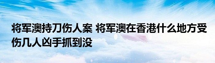 大家好.我是互联百科的羽儿,现在为大家解决以上将军澳持刀伤人案 将军澳在香港什么地方受伤几人凶手抓到没的问题.