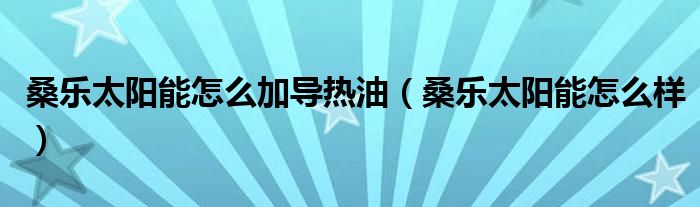 大家好,雨雨来为大家解答以上问题,桑乐太阳能怎么加导热油,桑乐太阳能怎么样很多人还不知道,现在让我们一起来看看吧!
