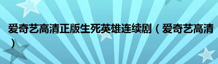 大家好,雨雨来为大家解答以上问题,爱奇艺高清正版生死英雄连续剧,爱奇艺高清很多人还不知道,现在让我们一起来看看吧!