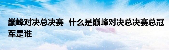 大家好.我是互联百科的羽儿,现在为大家解决以上巅峰对决总决赛 什么是巅峰对决总决赛总冠军是谁的问题.