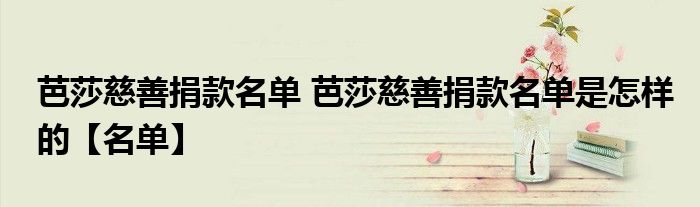 大家好.我是互联百科的羽儿,现在为大家解决以上芭莎慈善捐款名单 芭莎慈善捐款名单是怎样的【名单】的问题.