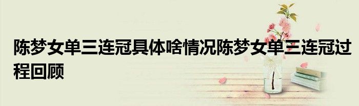 大家好.我是互联百科的羽儿,现在为大家解决以上陈梦女单三连冠具体啥情况陈梦女单三连冠过程回顾的问题.