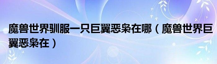 魔兽世界驯服一只巨翼恶枭在哪(魔兽世界巨翼恶枭在)