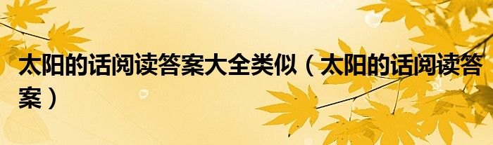关于太阳的话阅读答案大全类似,太阳的话阅读答案这个很多人还不知道,今天菲菲来为大家解答以上的问题,现在让我们一起来看看吧!
