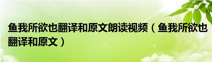 关于鱼我所欲也翻译和原文朗读视频,鱼我所欲也翻译和原文这个很多人还不知道,今天菲菲来为大家解答以上的问题,现在让我们一起来看看吧!