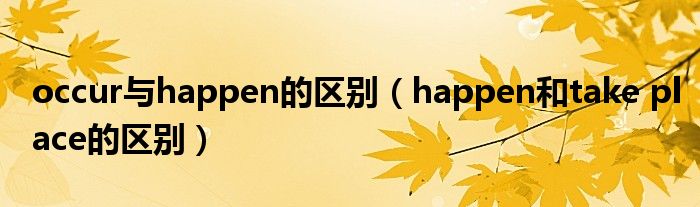 关于occur与happen的区别,happen和take place的区别这个很多人还不知道,今天菲菲来为大家解答以上的问题,现在让我们一起来看看吧!