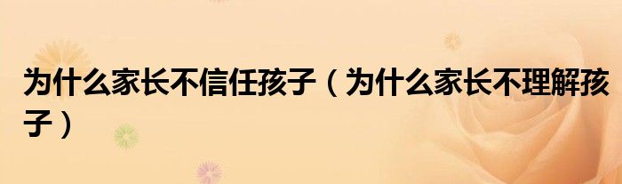 关于为什么家长不信任孩子,为什么家长不理解孩子这个很多人还不知道,今天菲菲来为大家解答以上的问题,现在让我们一起来看看吧!