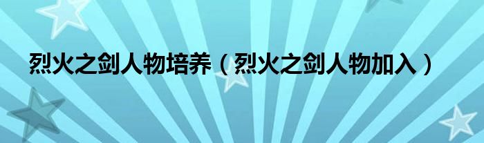 关于烈火之剑人物培养,烈火之剑人物加入这个很多人还不知道,今天菲菲来为大家解答以上的问题,现在让我们一起来看看吧!