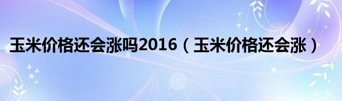 关于玉米价格还会涨吗2016,玉米价格还会涨这个很多人还不知道,今天菲菲来为大家解答以上的问题,现在让我们一起来看看吧!