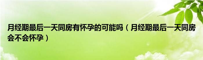 1、 月经期最后一天同房一般不会怀孕,因为这期间卵泡已经排出,同房怀孕的概率相对非常低。