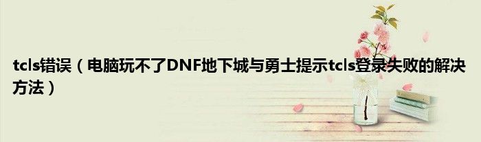 大家好,综合小编来为大家讲解下tcls错误,电脑玩不了DNF地下城与勇士提示tcls登录失败的解决方法这个很多人还不知道,现在让我们一起来看看吧!