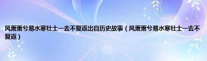 大家好,小问来为大家解答以上问题。风萧萧兮易水寒壮士一去不复返出自历史故事,风萧萧兮易水寒壮士一去不复返这个很多人还不知道,现在让我们一起来看看吧!