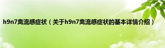 h9n7禽流感症状(关于h9n7禽流感症状的基本详情介绍)
